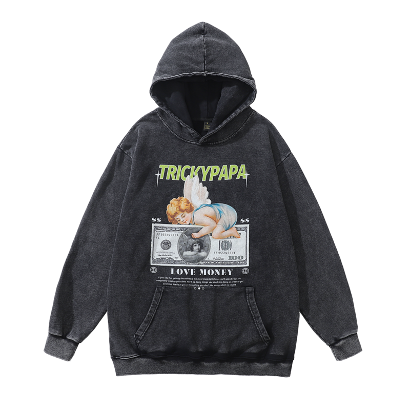 Черное хлопковое худи TKPA с принтом "Ангел на денежной банкноте"