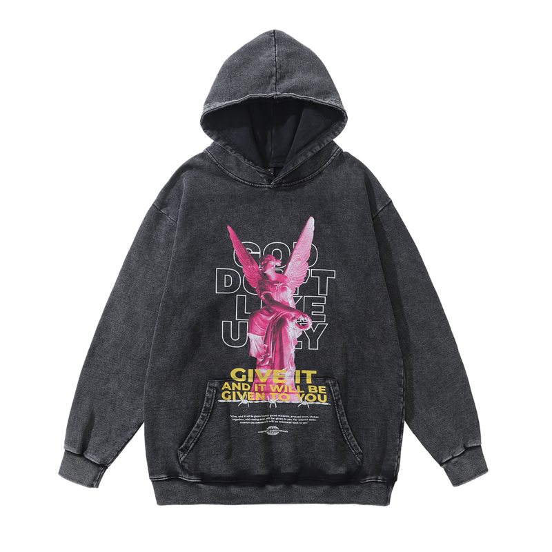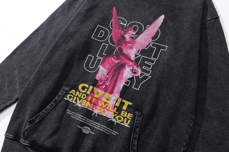Черное хлопковое худи TKPA с принтом женщины-ангела с крыльями