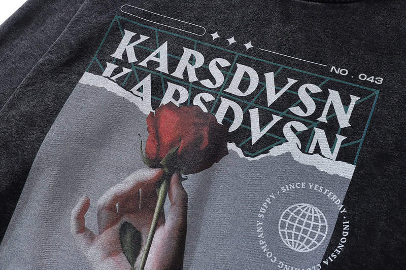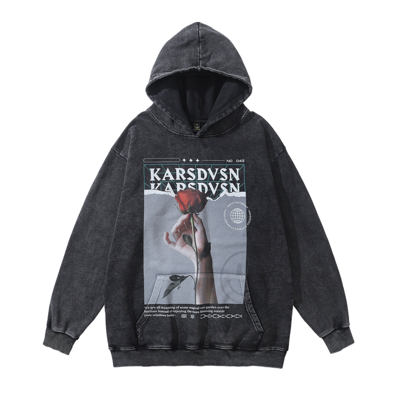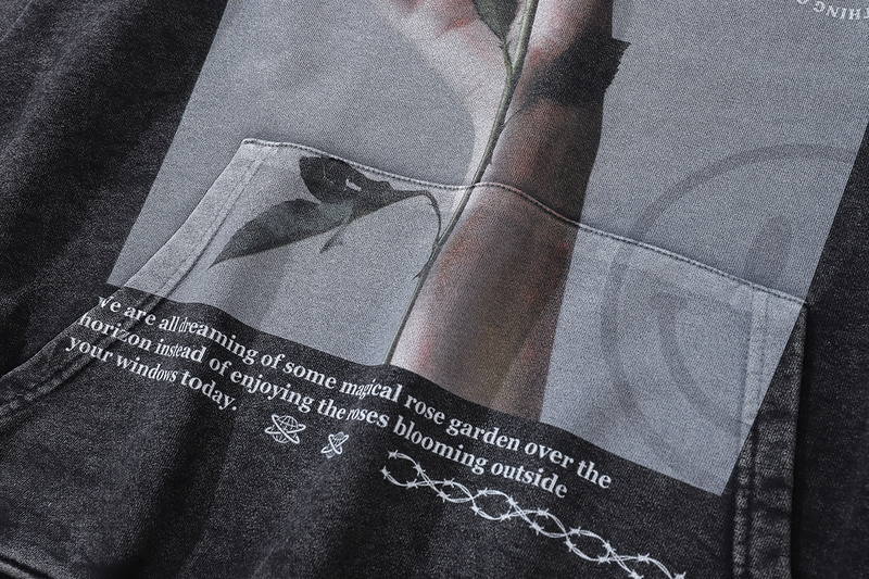 Худи черное хлопковое от бренда TKPA с принтом "Роза в руке"