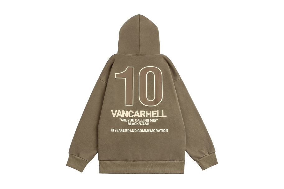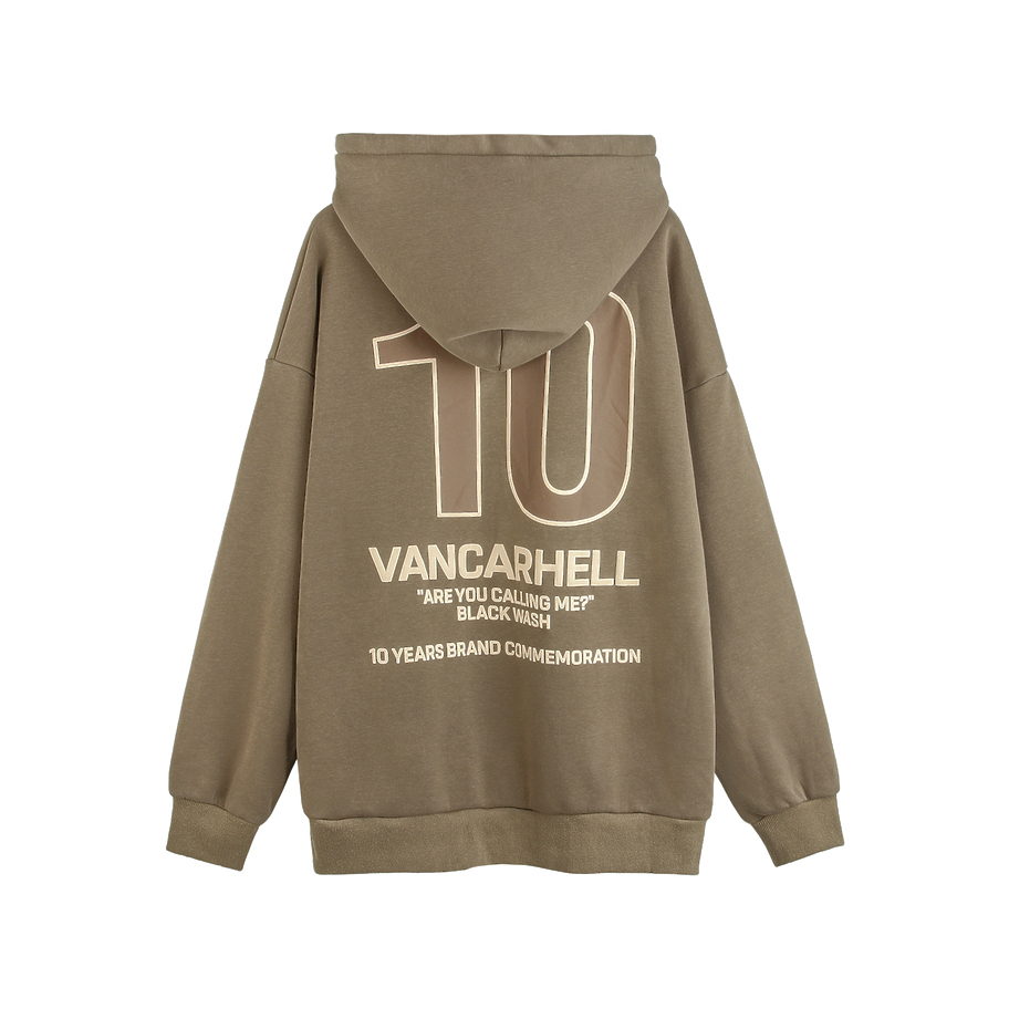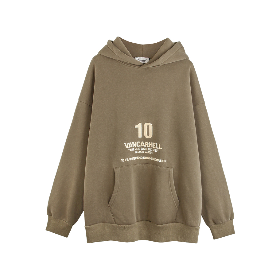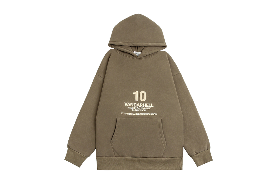Объемное бежевое худи от VANCARHELL с удобными карманами кенгуру