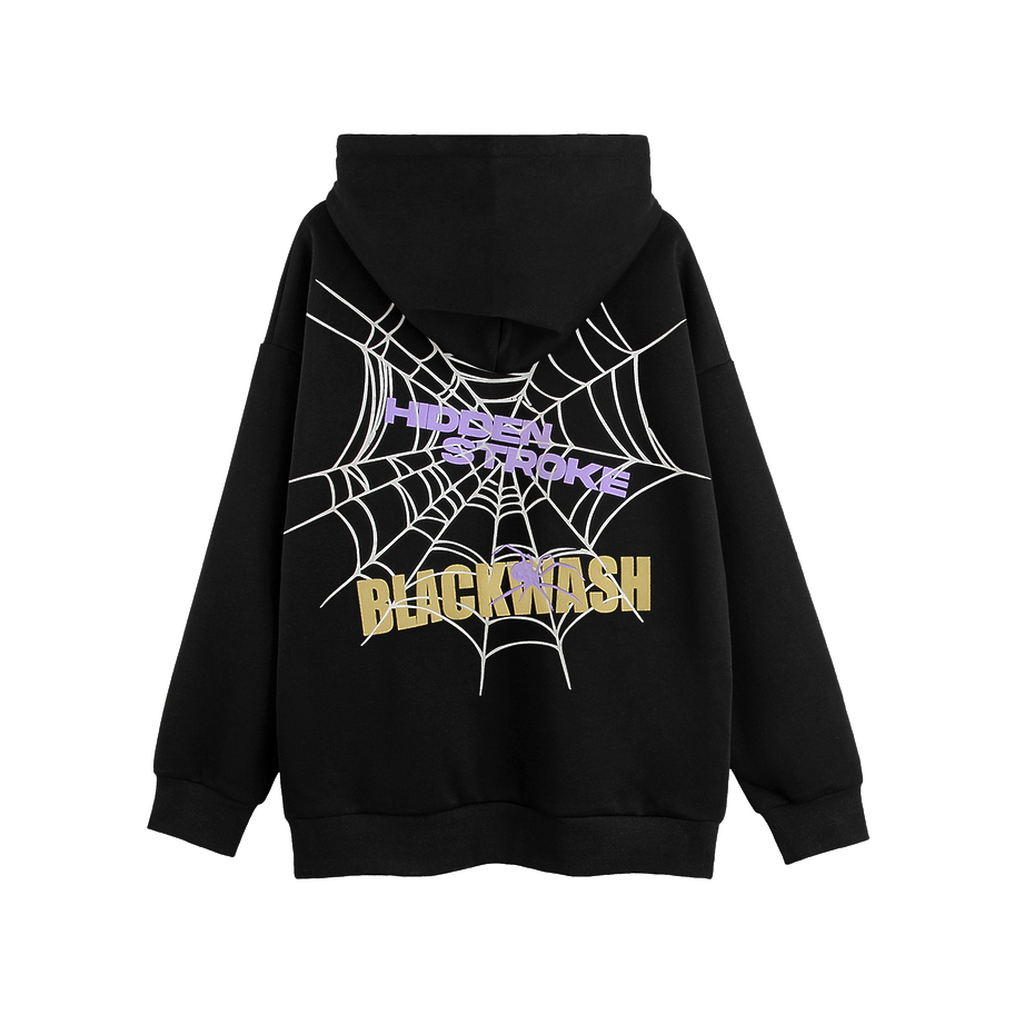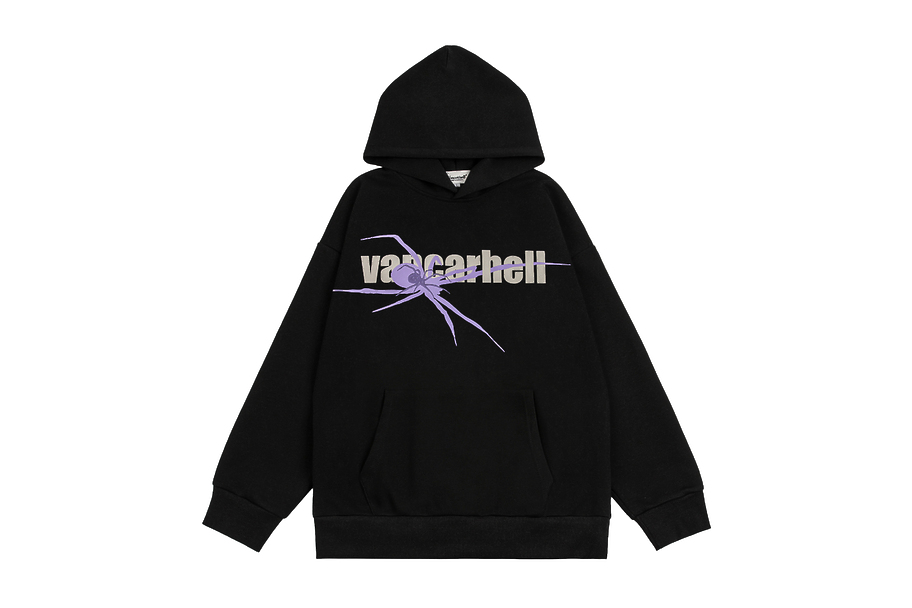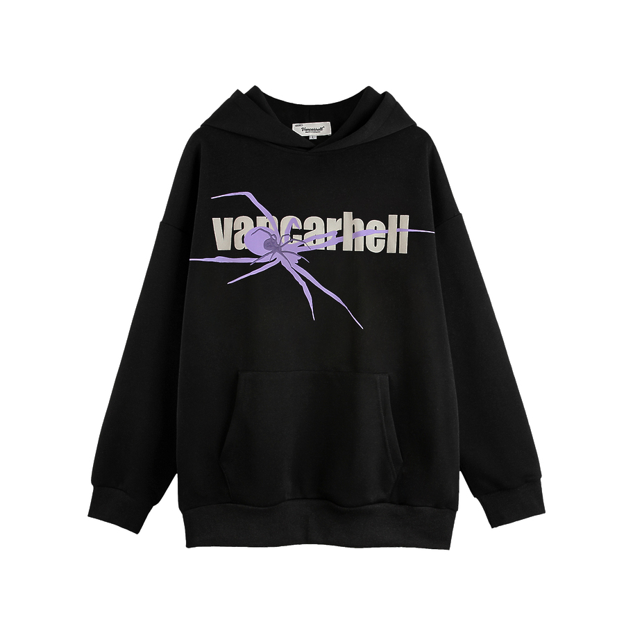 Повседневное черное худи VANCARHELL с принтом лого, паука и паутины