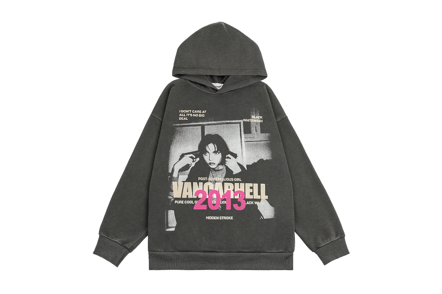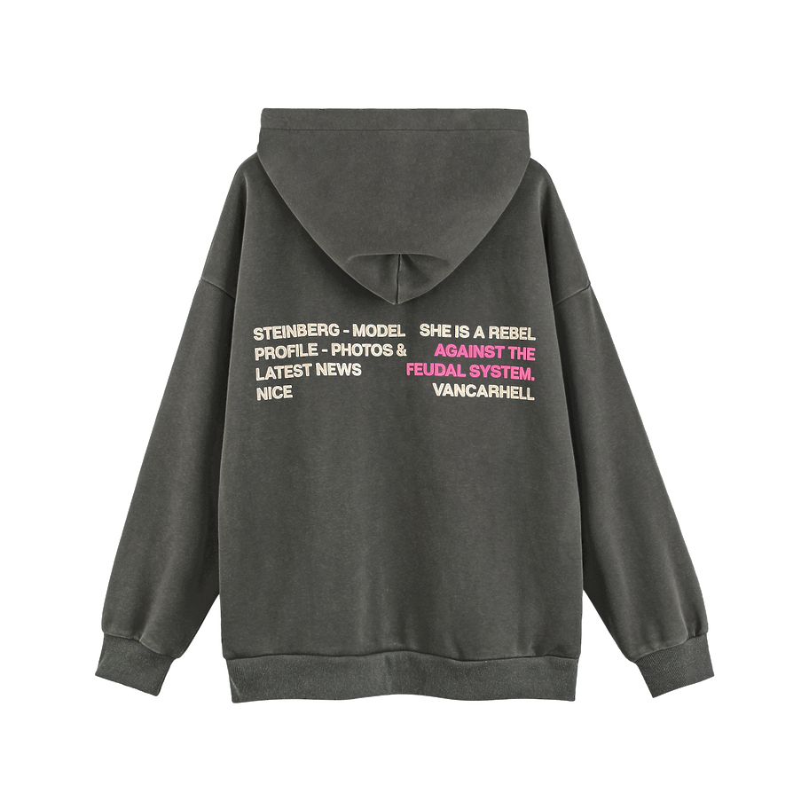 С принтом девушки спереди и текста сзади серое худи бренда VANCARHELL