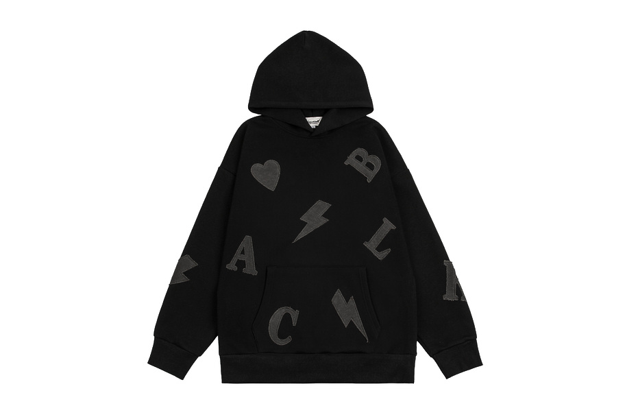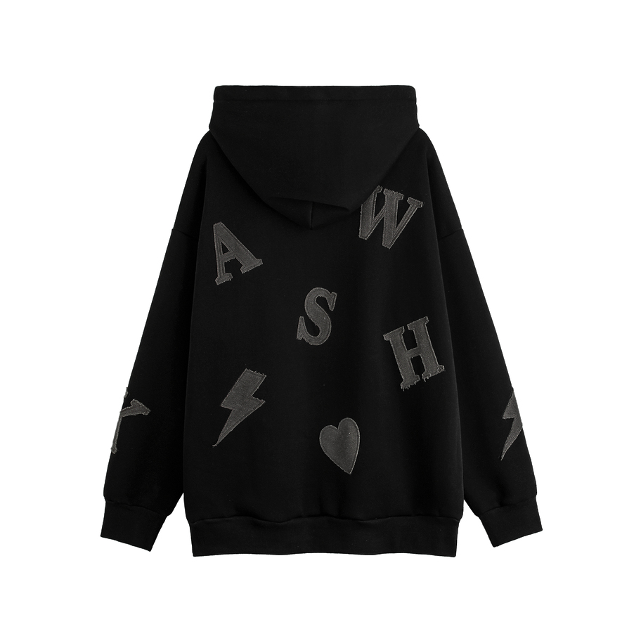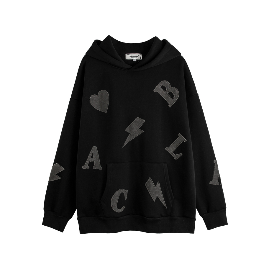 Плотное черное худи бренда VANCARHELL с нашивками букв и знаков