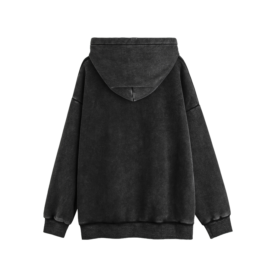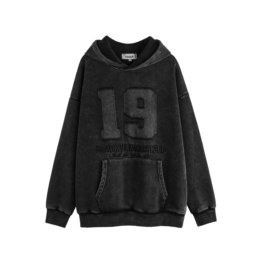 Выстиранное черное худи от VANCARHELL с вышитой цифрой 19 спереди