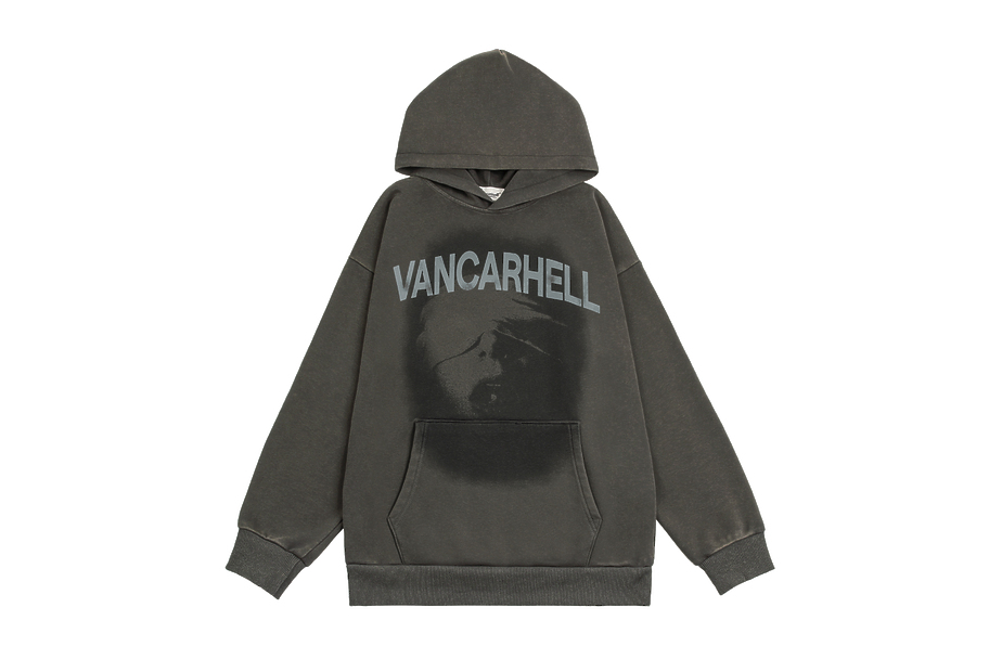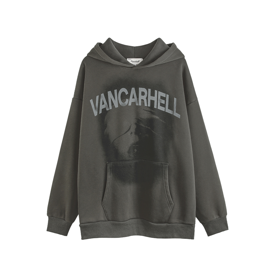 Повседневное с принтом лого темно-серое худи VANCARHELL с карманами