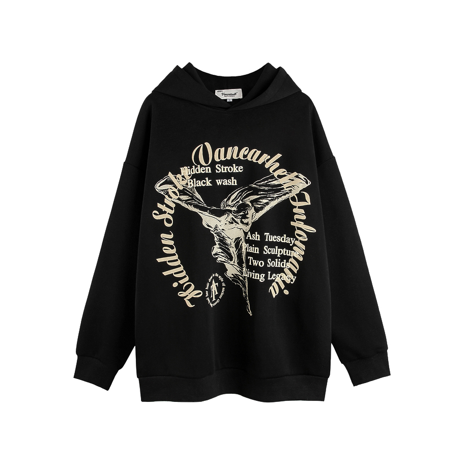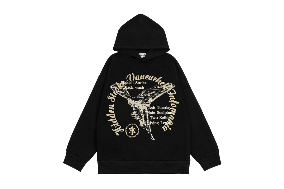 Стильное черное худи VANCARHELL с качественным принтом "Дух экстаза"