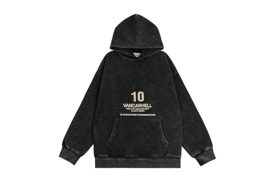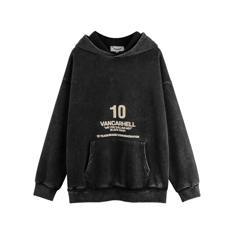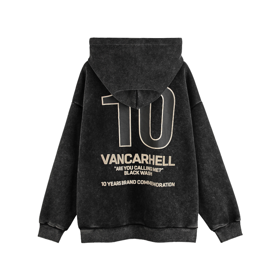 Выстиранное черное худи VANCARHELL с принтом лого и цифры 10 сзади