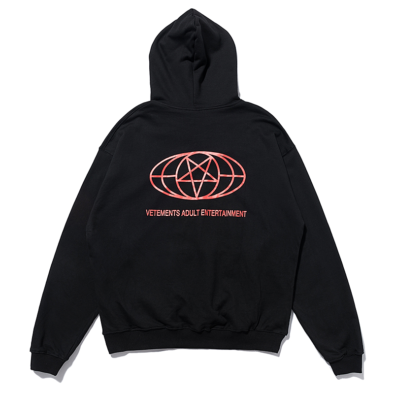 Повседневное черное худи VETEMENTS WEAR с красным принтом с 2-х сторон