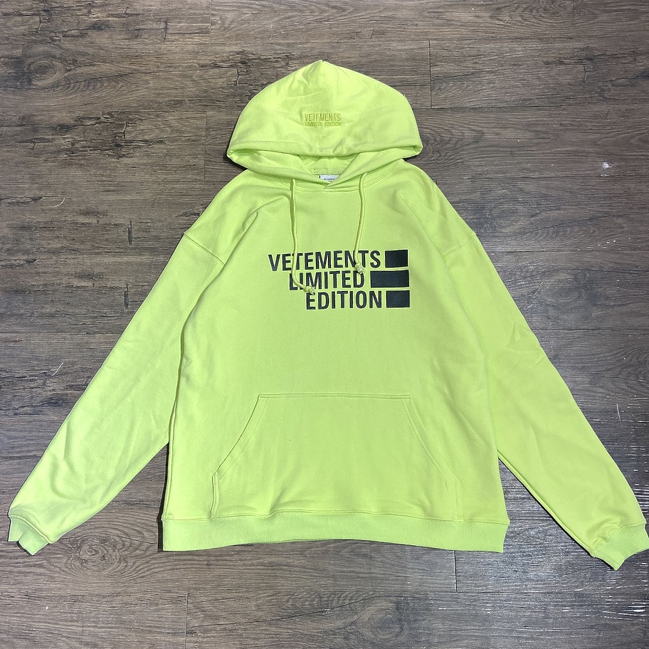 Унисекс желтое худи VETEMENTS WEAR с качественным принтом бренда