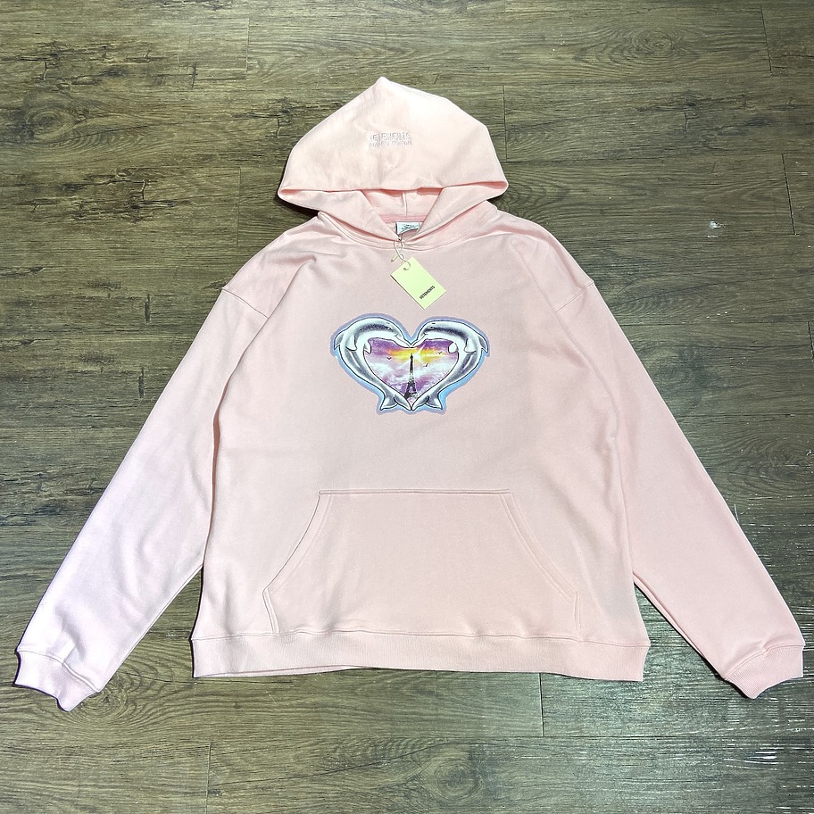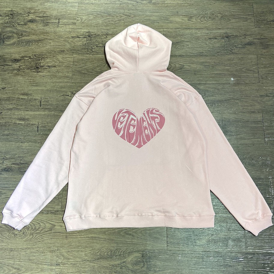 Светло-розовое худи от VETEMENTS WEAR с сердечками с двух сторон