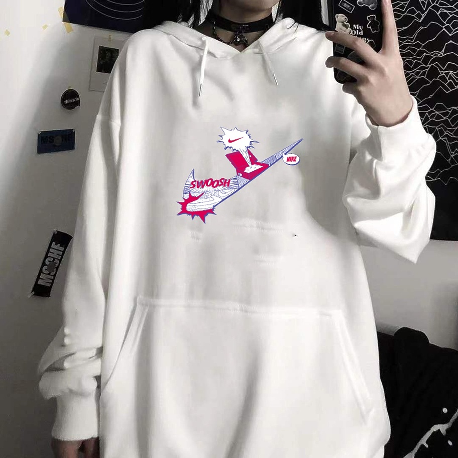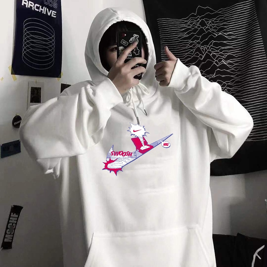 Худи выполнено в белом цвете Nike с ярким лого на груди