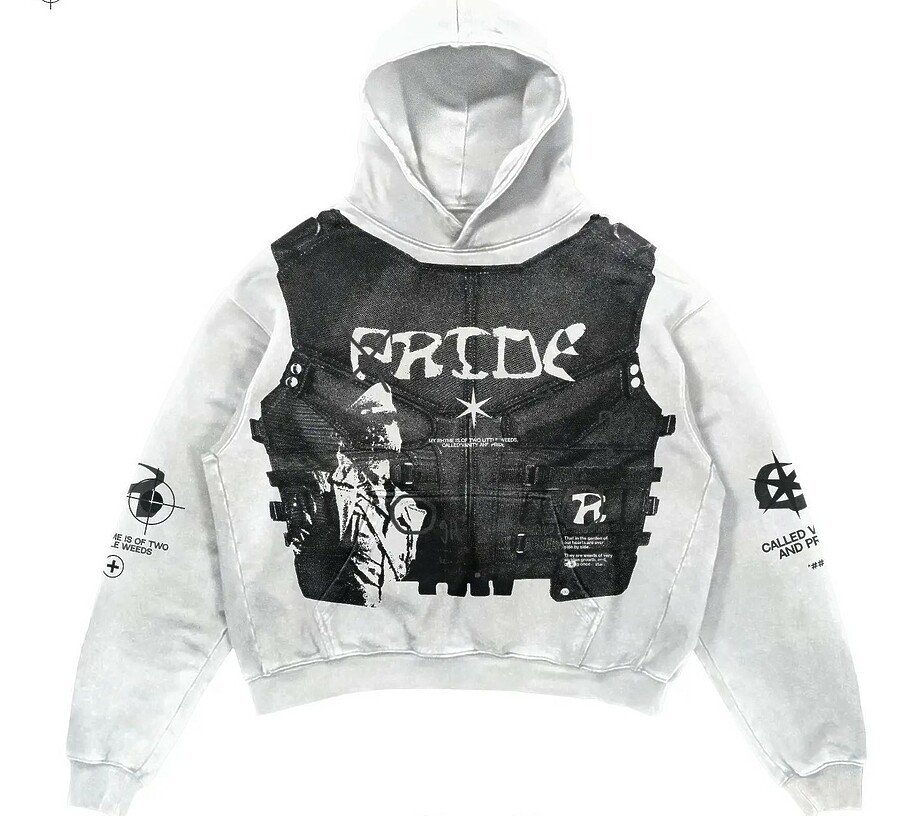 Худи Worksofrex белое с принтом "Жилет" и объёмным капюшоном