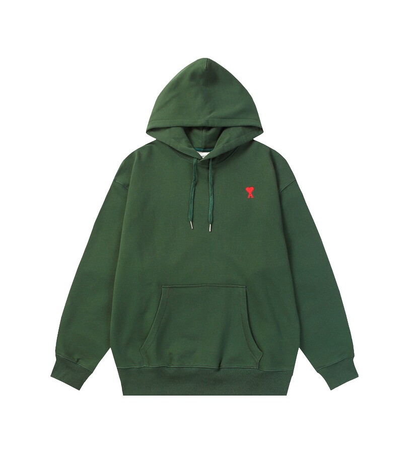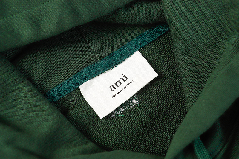 Худи зелёное AMI из 100% хлопка со спущенной плечевой линией рукава