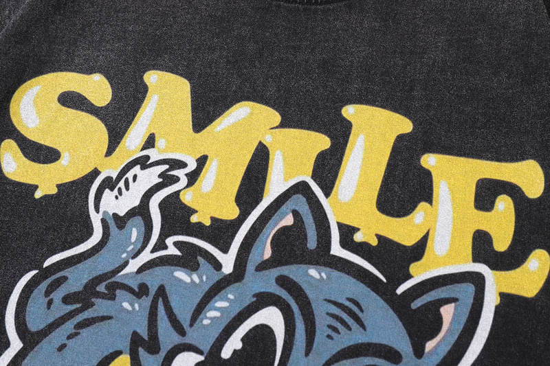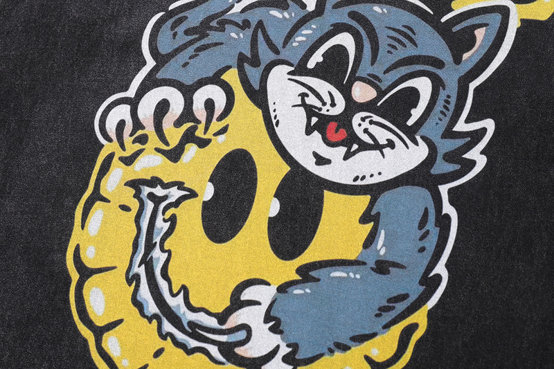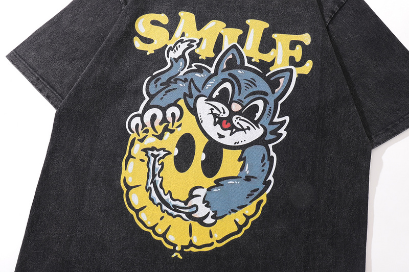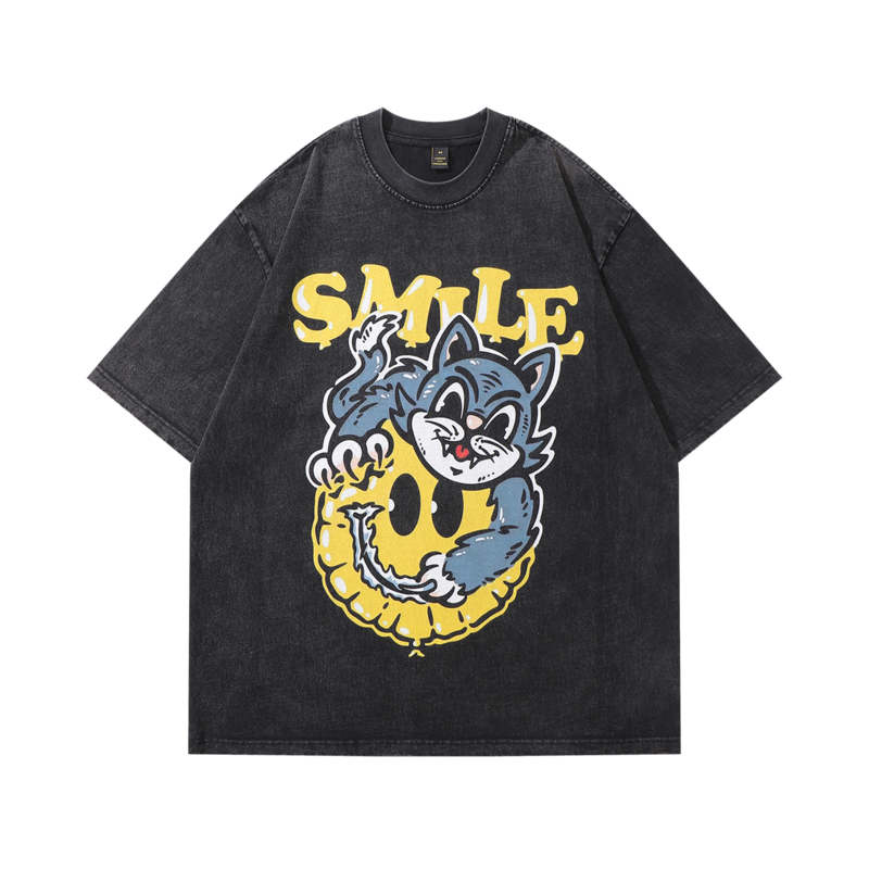 Из 100% хлопка чёрная футболка TKPA с рисунком "Кот и Смайл"
