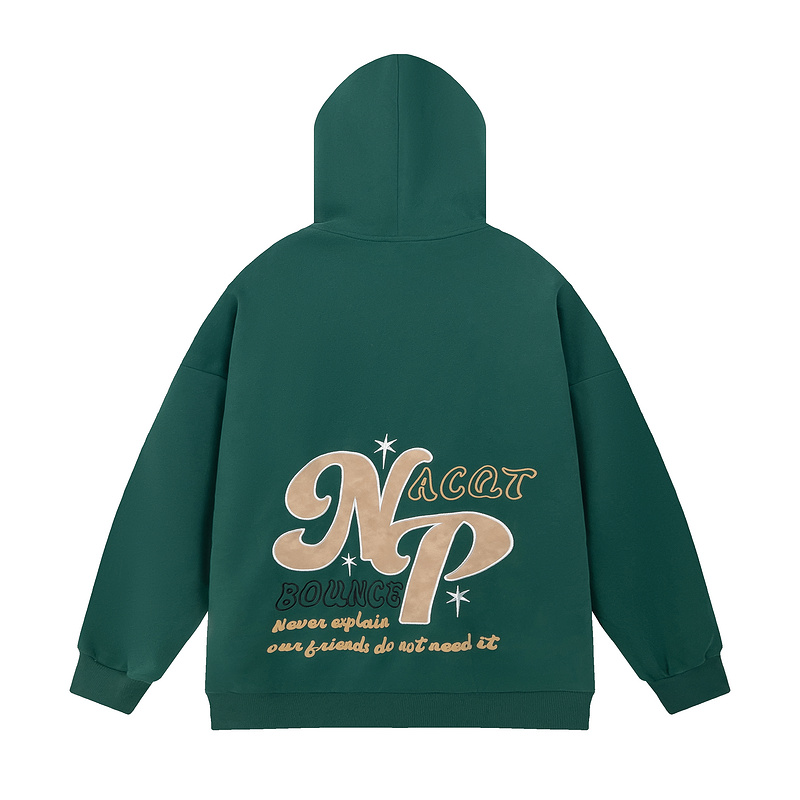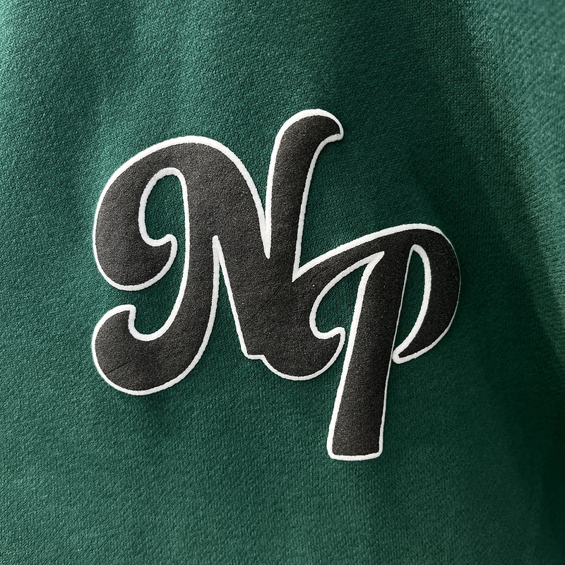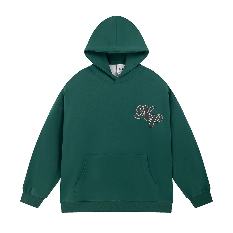 Изумрудное худи ACQT с большими буквами "NP" на спине