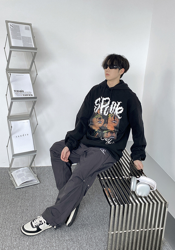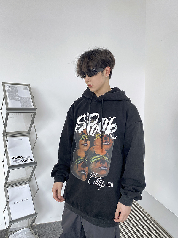 Изысканное худи Anotherself черного цвета с принтом лиц