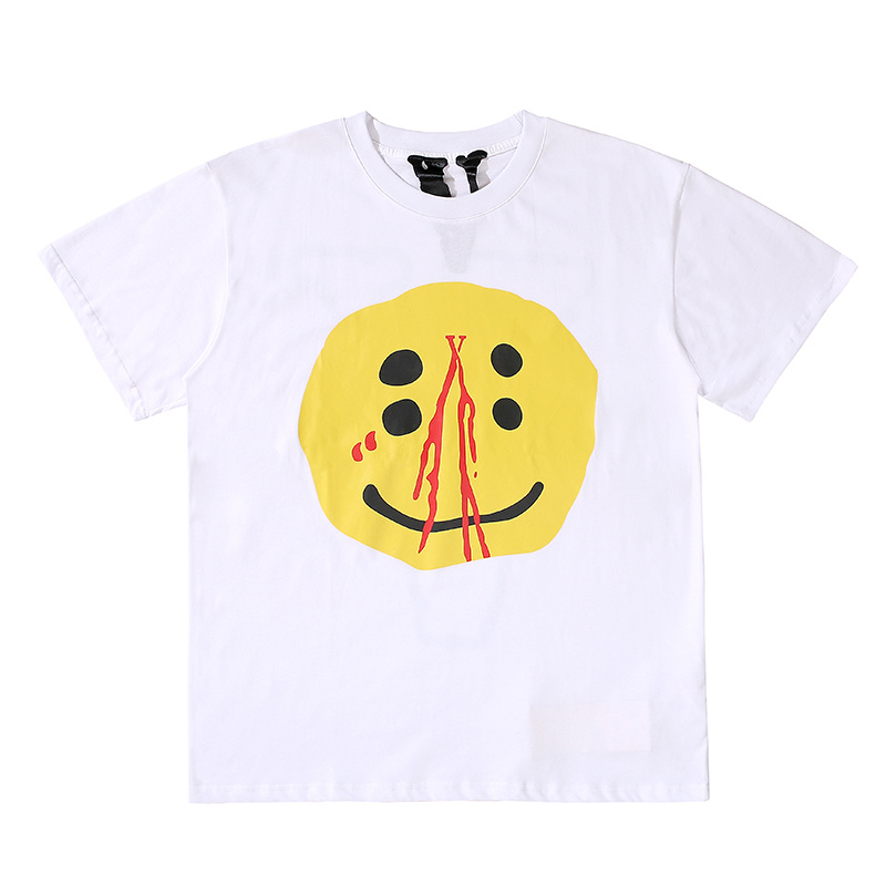 Качественная белая футболка VLONE с печатью "Кровоточащий смайл"