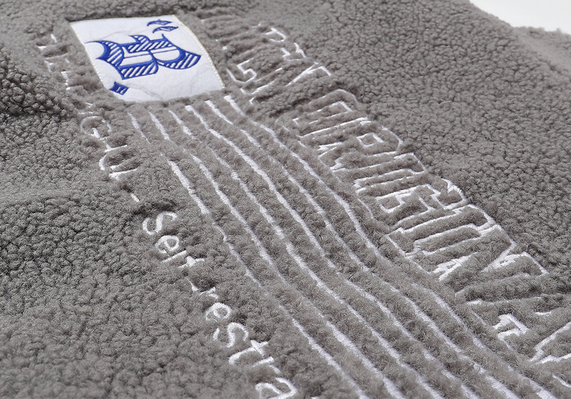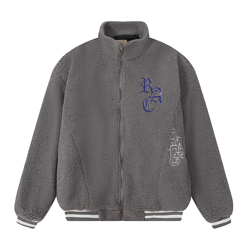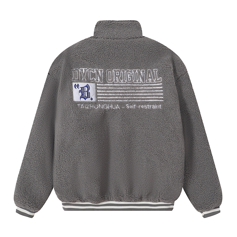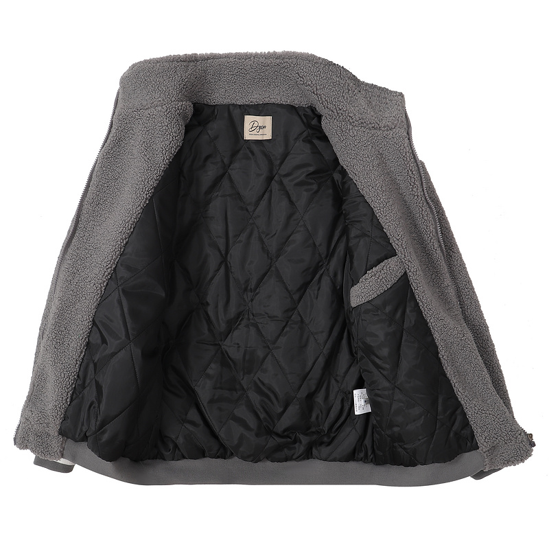Качественная куртка шерпа DYCN в сером цвете с надписью