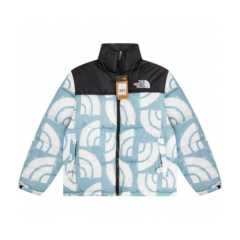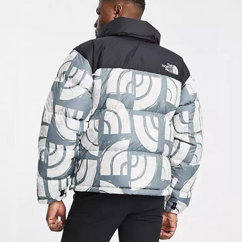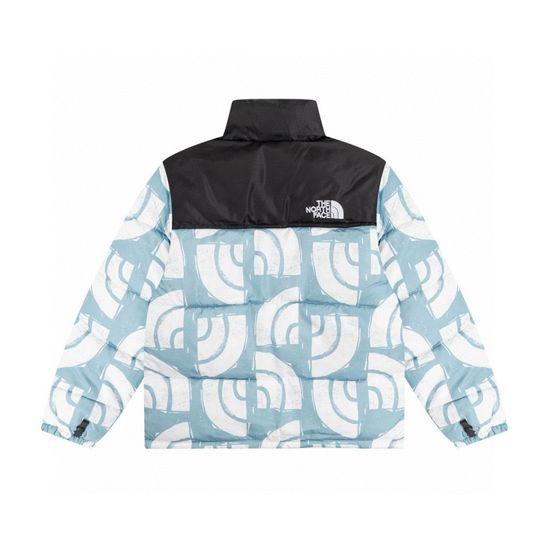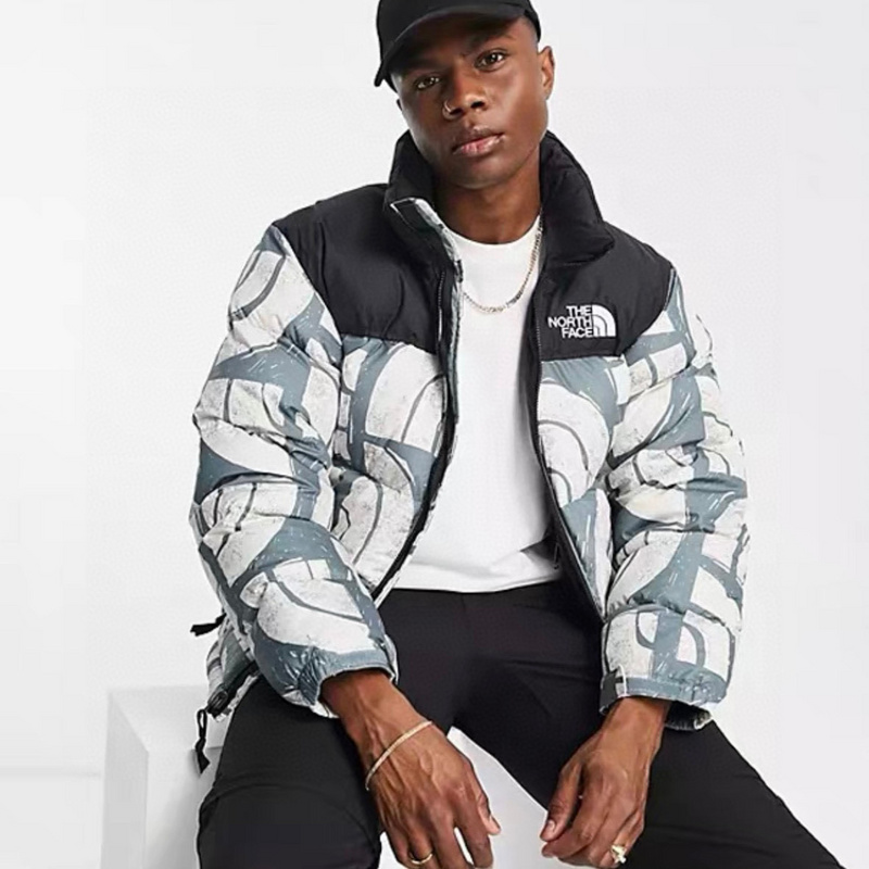 Качественная куртка в белом цвете с голубым рисунком The North Face