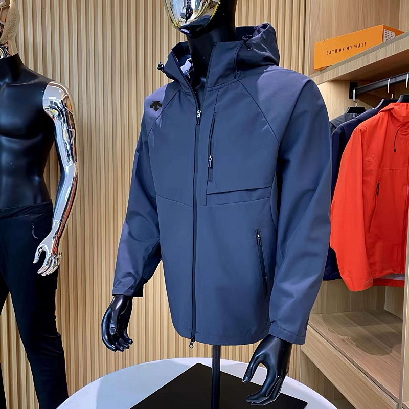 Качественная с карманами на молнии Descente ветровка синего цвета