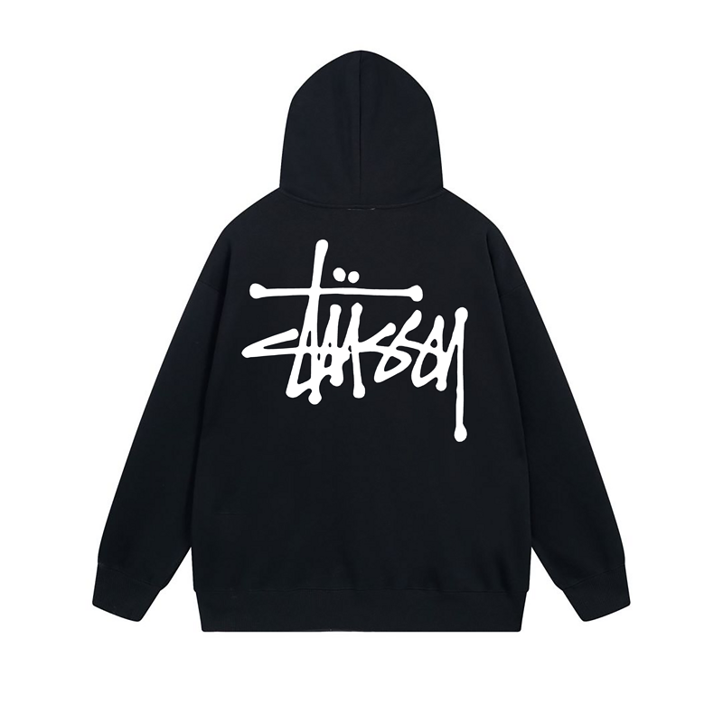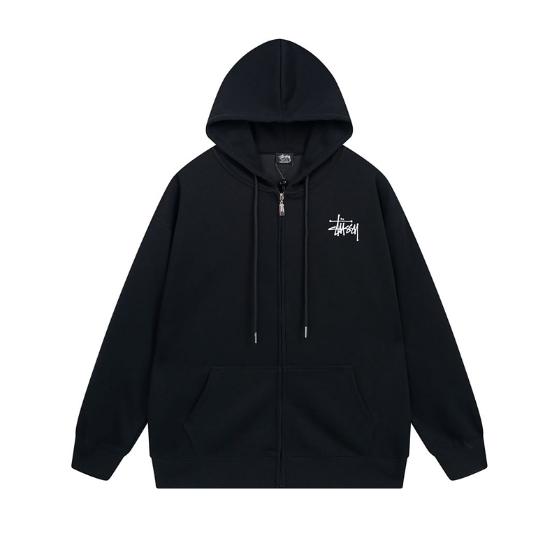 Качественное черное зип худи Stussy с большим принтом на спине