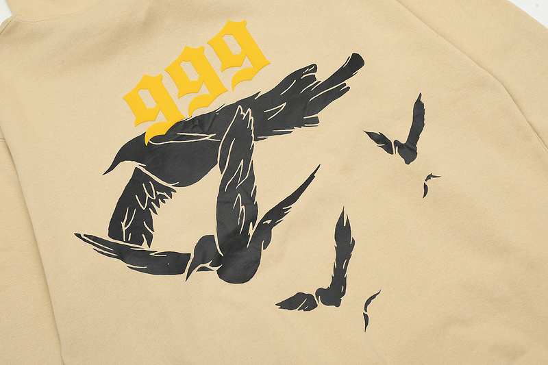 Качественное худи Revenge бежевое с принтом "Птицы"