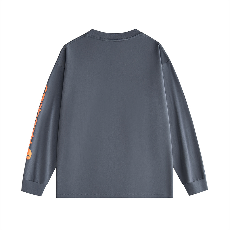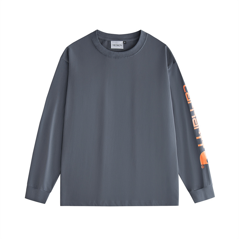 Качественный серый Carhartt лонгслив с надписью на рукаве