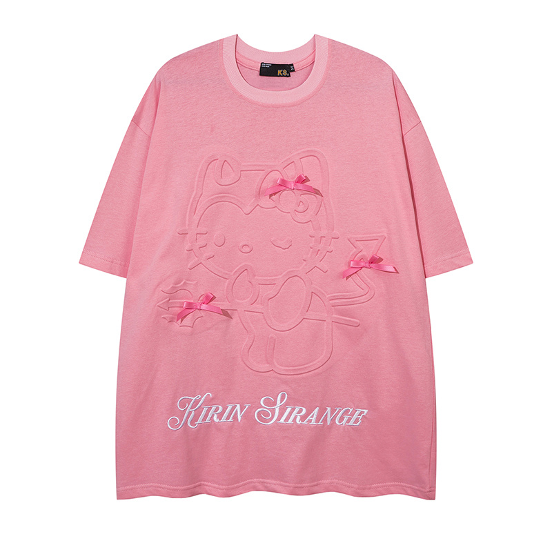 KIRIN STRANGE розовая футболка с бантами и объемным котом