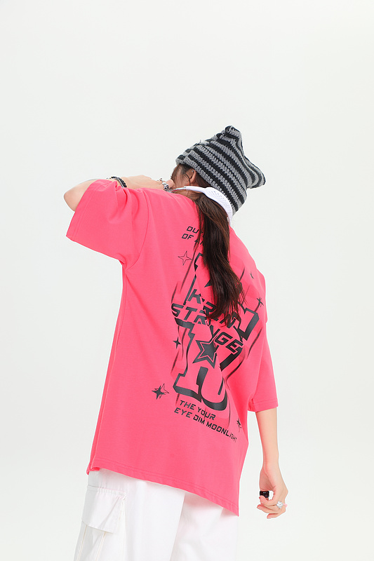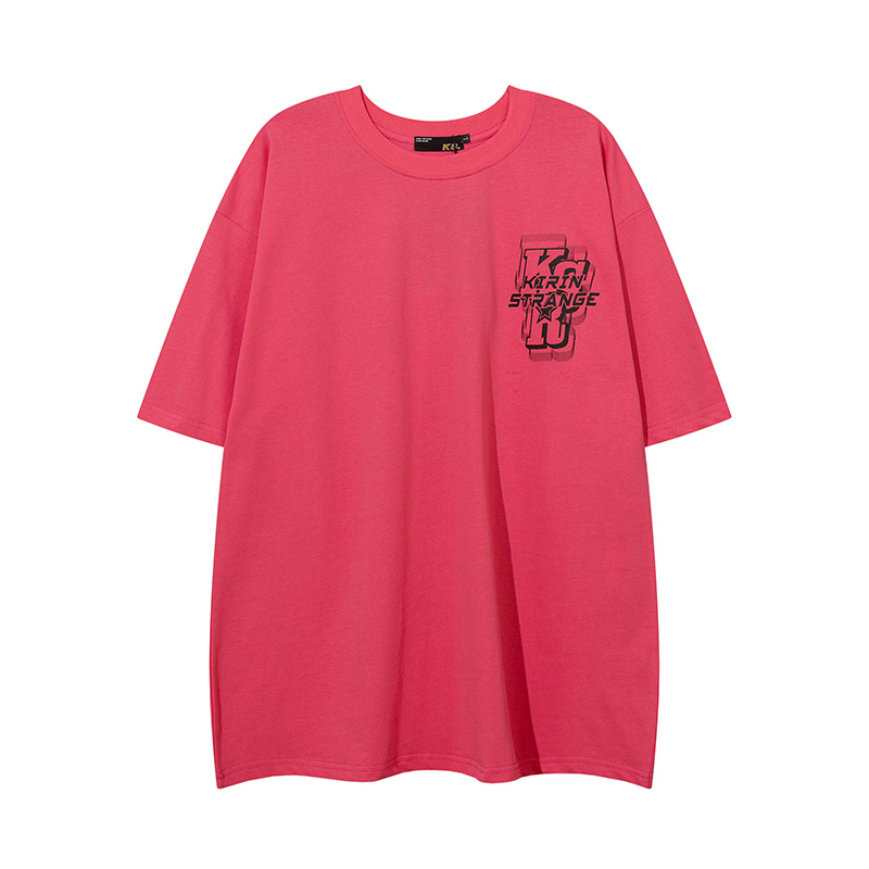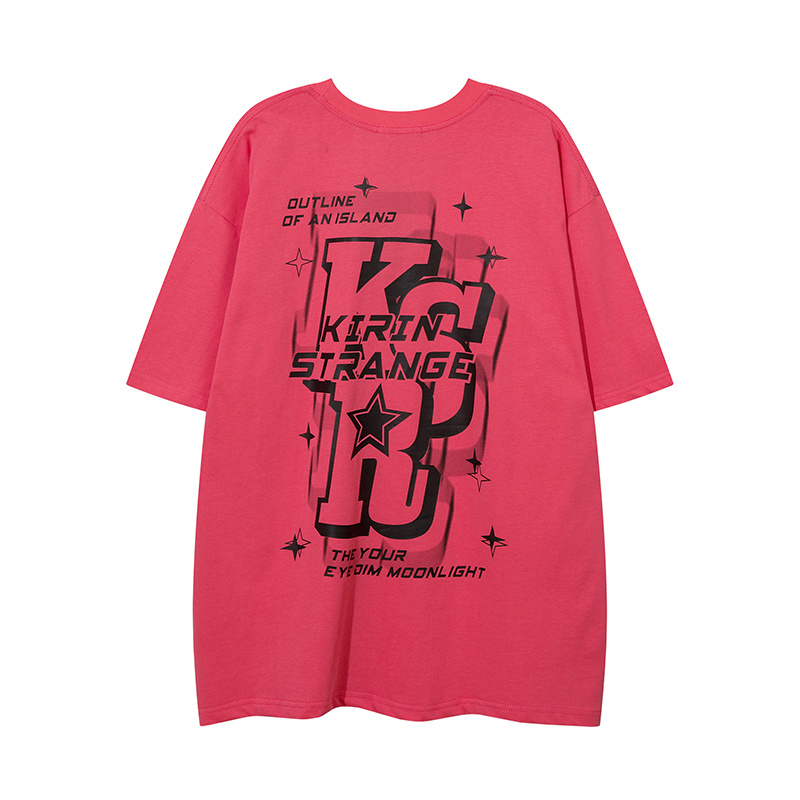 KIRIN STRANGE розовая футболка с принтами черного цвета