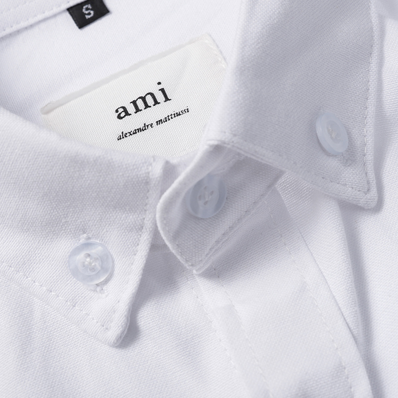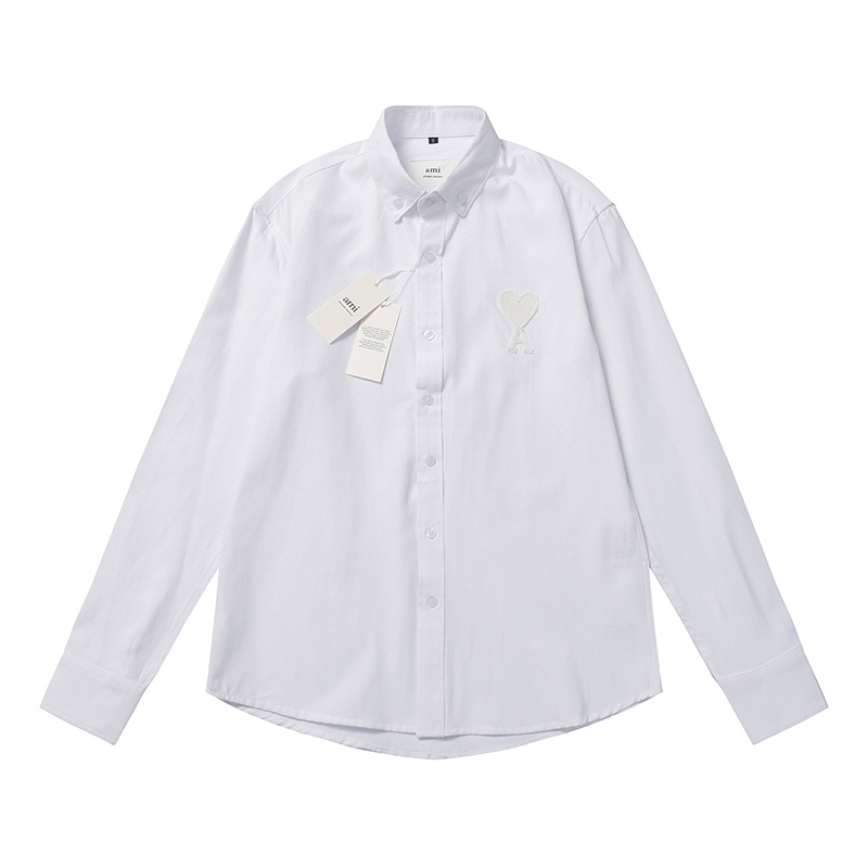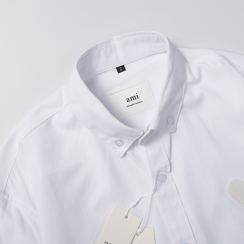 Классическая белая AMI однотонная с вышивкой на груди рубашка
