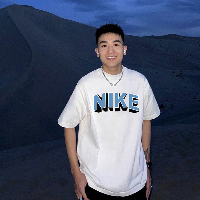 Классическая белая футболка с голубым логотипом Nike по центру