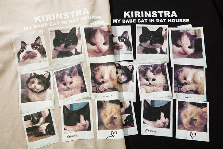 Классическая бежевая KIRIN STRANGE футболка с принтом "коты"