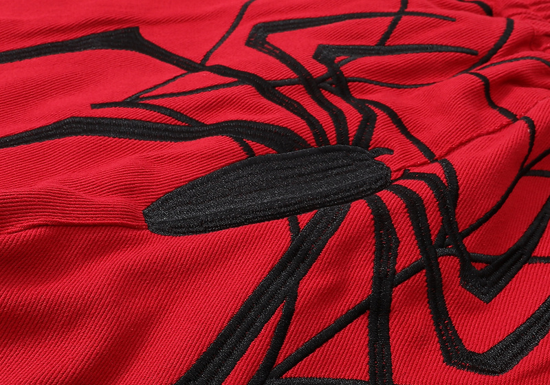 Комфортные джинсы DYCN красного цвета с большим пауком