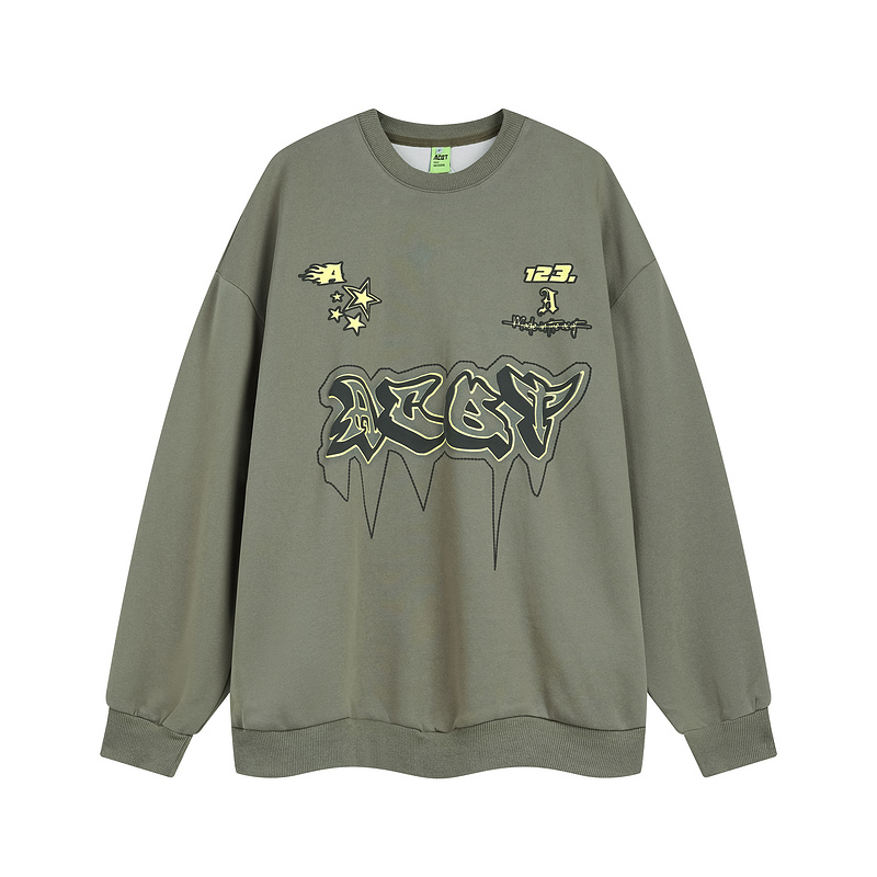 Комфортный свитшот с лого в виде граффити ACQT оливковый