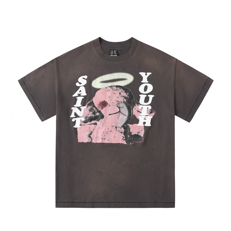 Коричневая футболка Saint Michael Ascension с розовым принтом