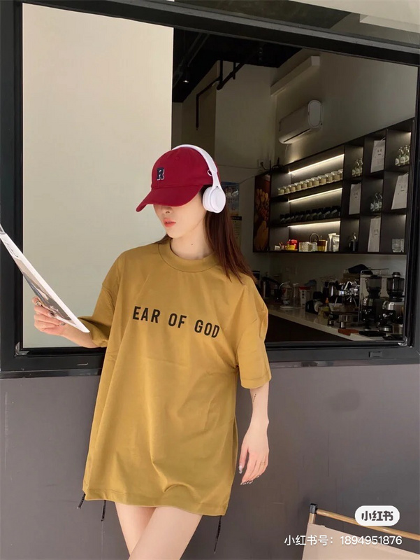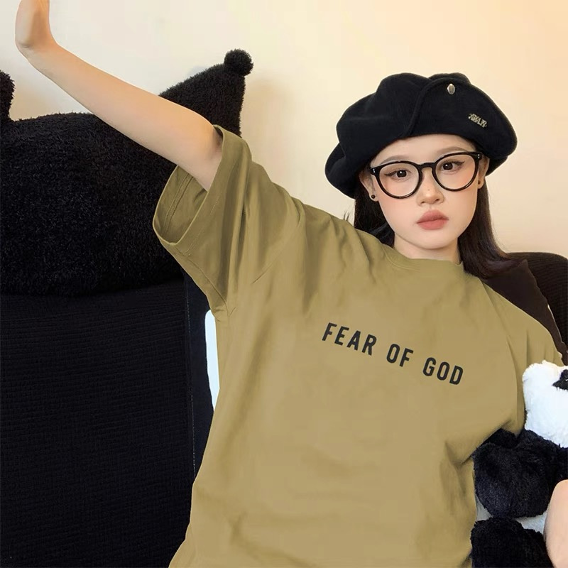 Коричневая модная футболка Fear Of God из натурального хлопка