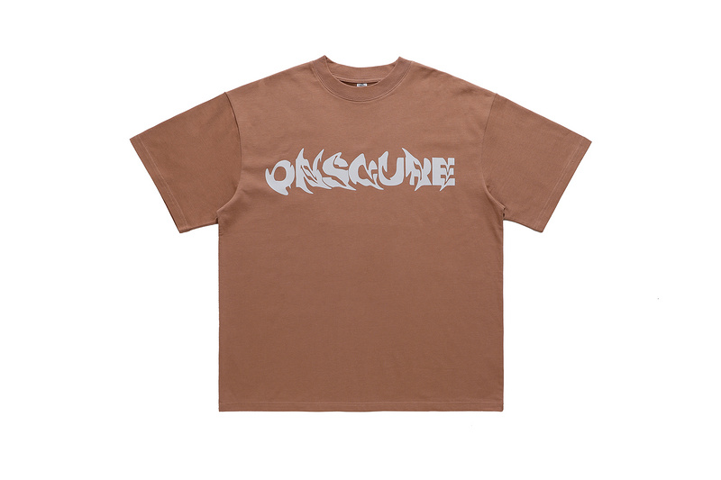 Коричневая стильная футболка с серой надписью "onsour"