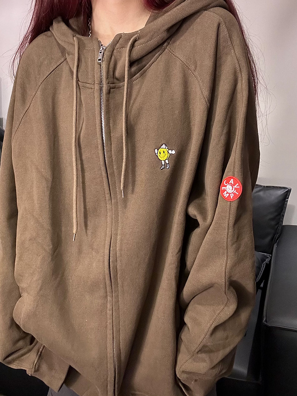 Коричневое зип худи бренда Cav empt со смайликом на груди