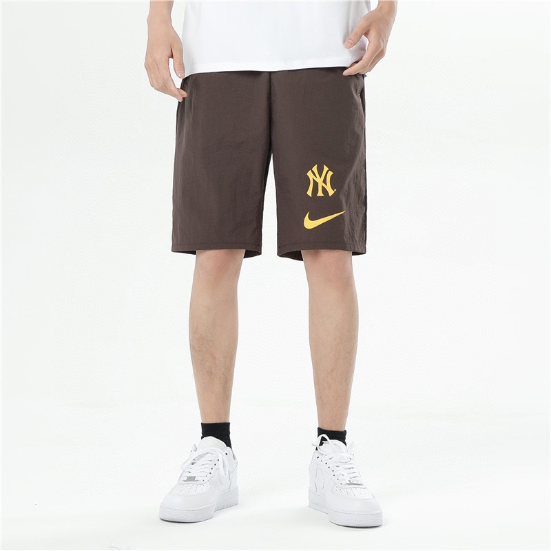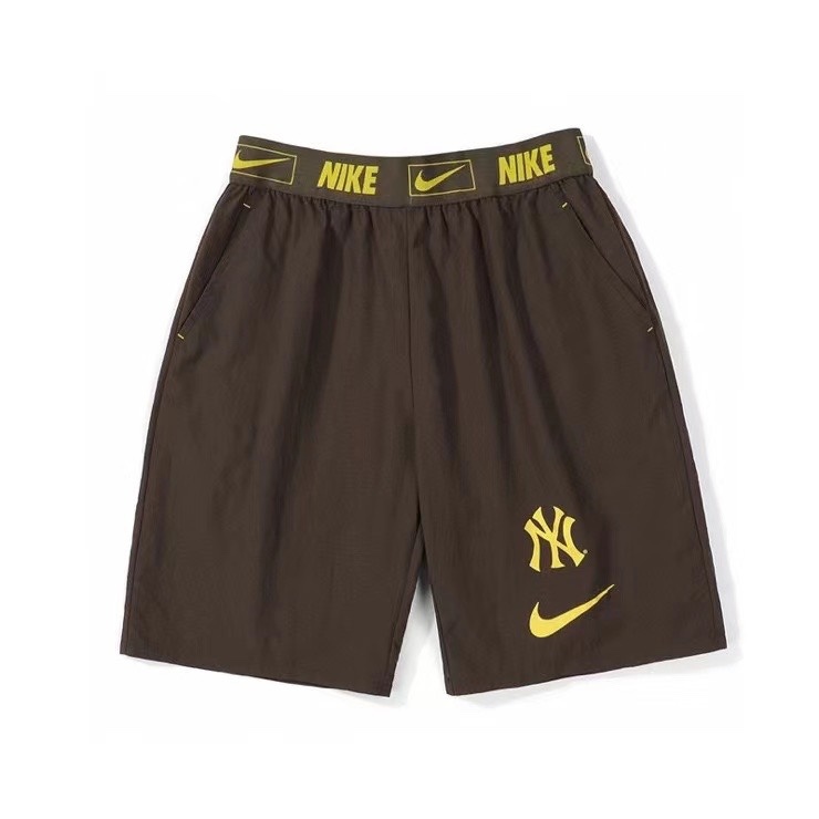 Коричневые шорты с фирменным логотипом Nike & MLB снизу и на резинке