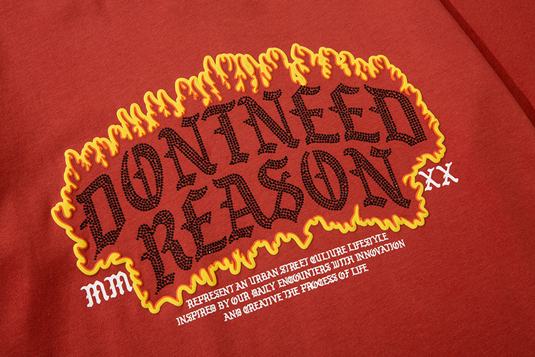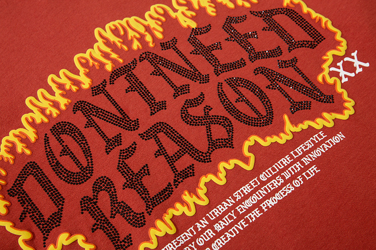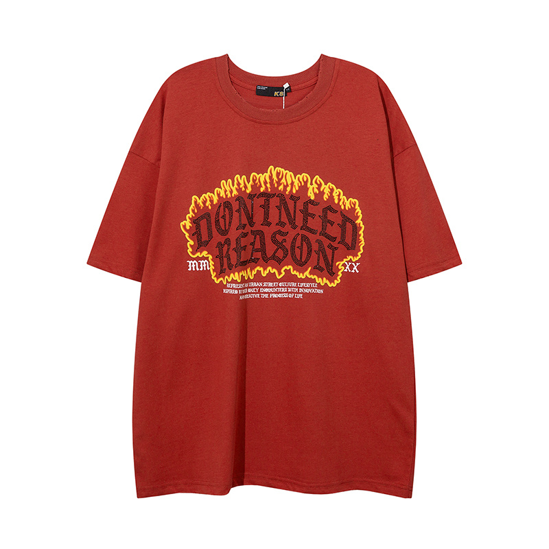 Красная яркая футболка KIRIN STRANGE с "горящим" фактурным принтом