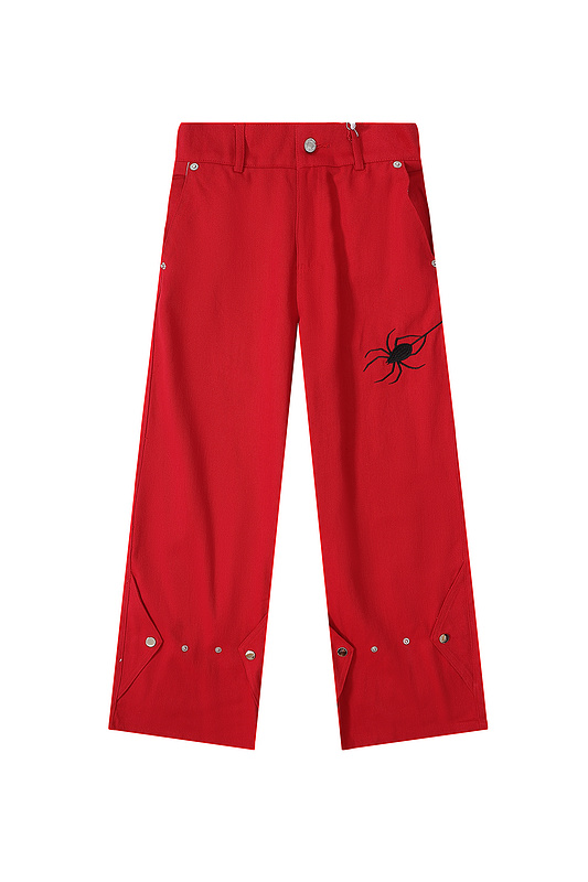 Красного цвета джинсы DYCN с вышитой паутиной и пауком