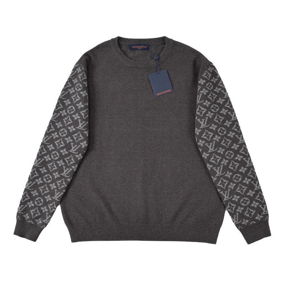 Креативный Louis Vuitton темно-серого цвета свитер с лого на рукавах