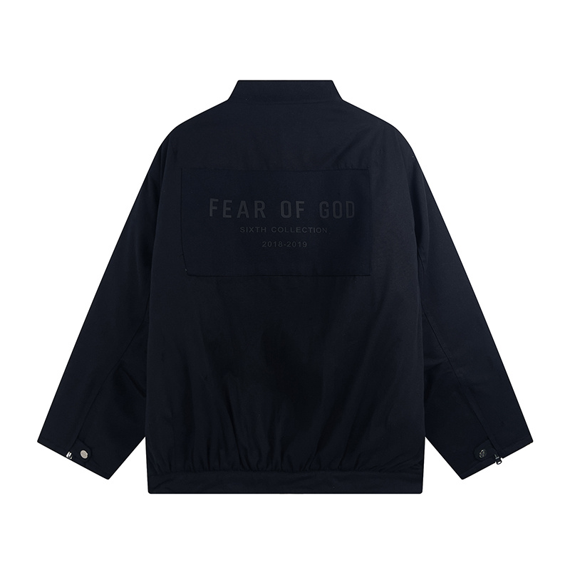 Куртка FEAR OF GOD черного цвета с большой брендовой нашивкой