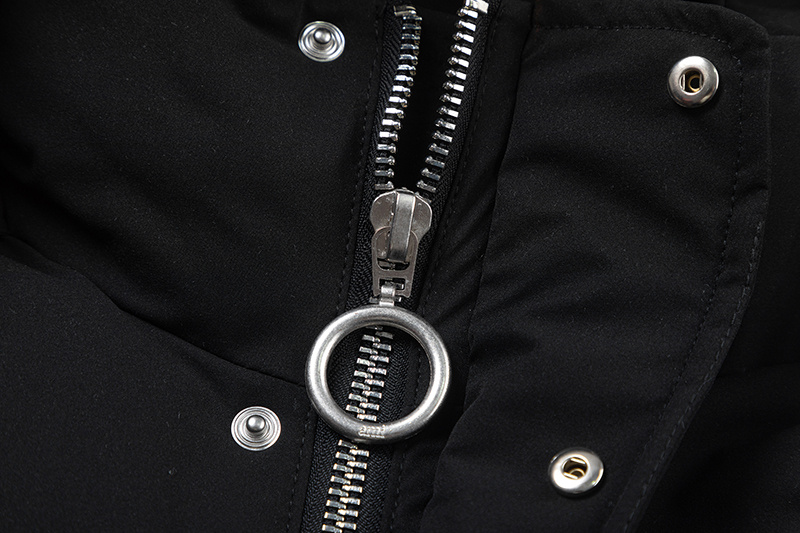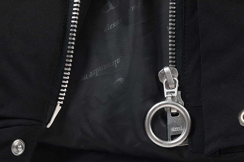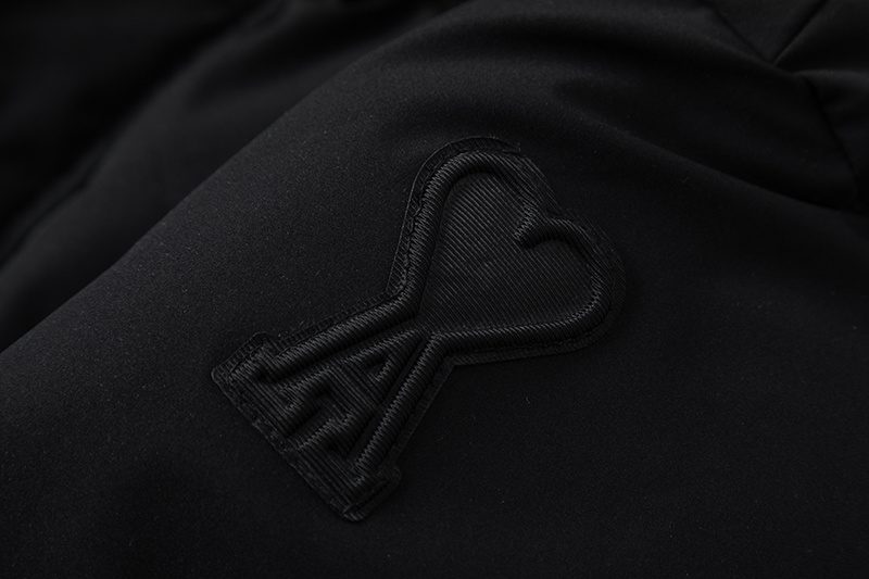 Куртка с вышитым логотипом AMI в черном цвете с теплым капюшоном