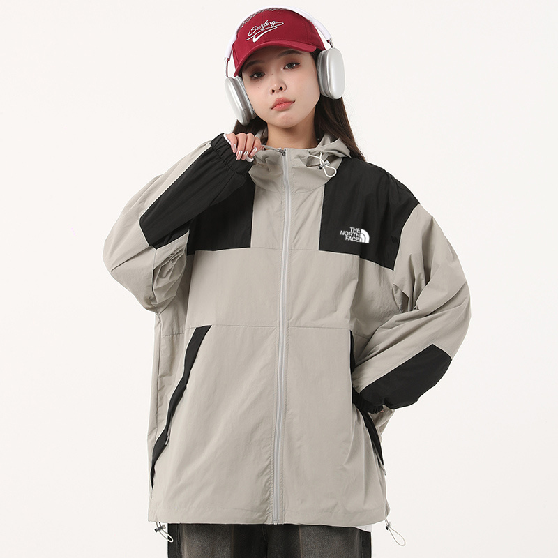 Куртка серая от бренда The North Face с объёмным капюшоном