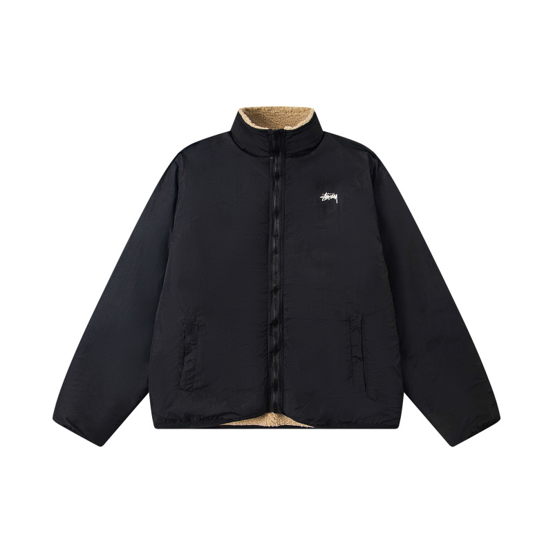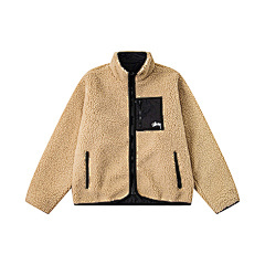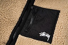 Куртка шерпа Stussy двухсторонняя в бежевом цвете с карманами