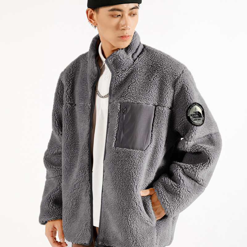 Куртка шерпа утеплённая The North Face цвет-серый с карманом на груди