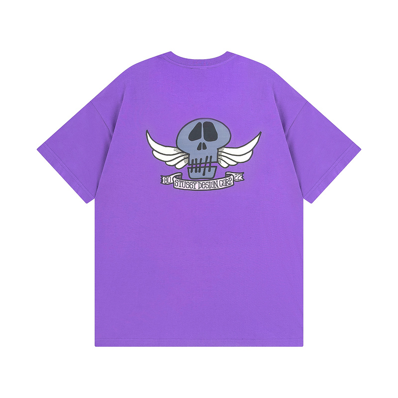 Лавандовая футболка Stussy с принтом "крылатый череп"