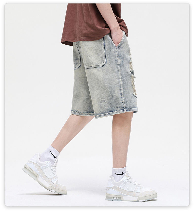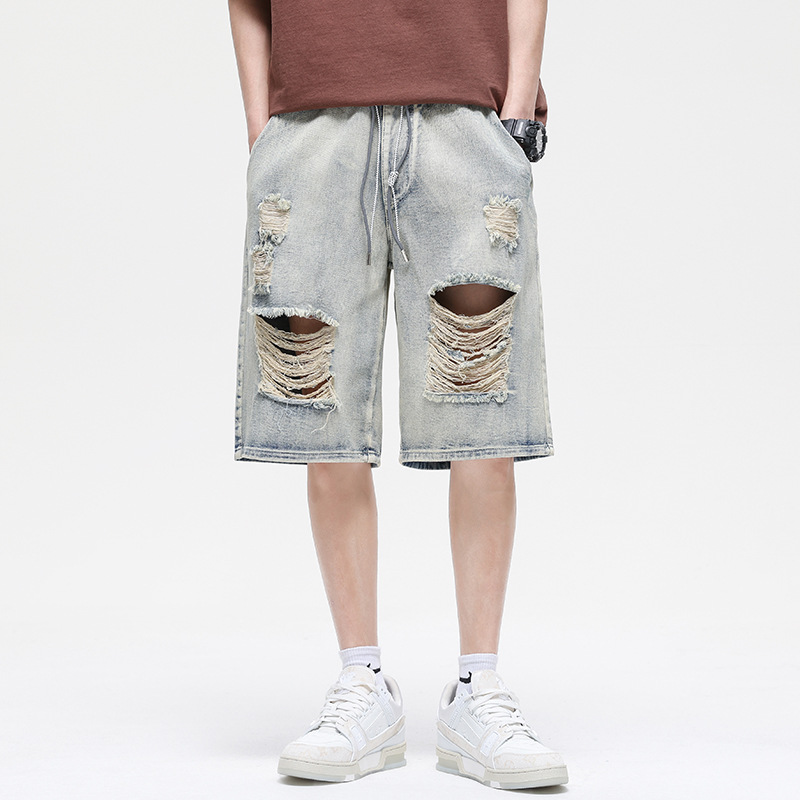 Летние Locketomy светло-голубые порванные шорты оверсайз