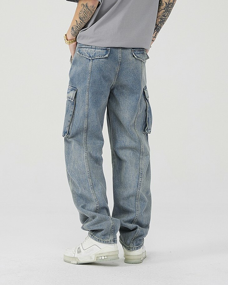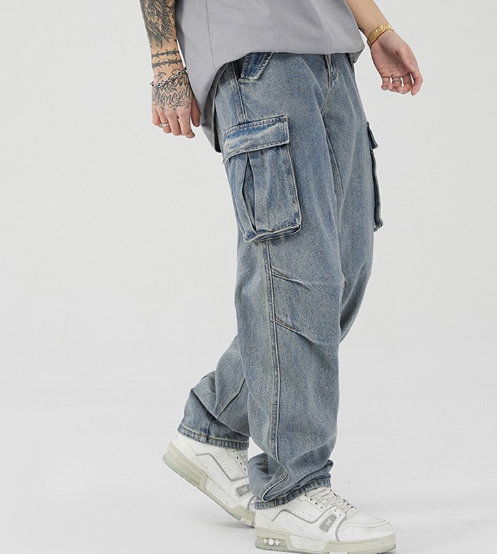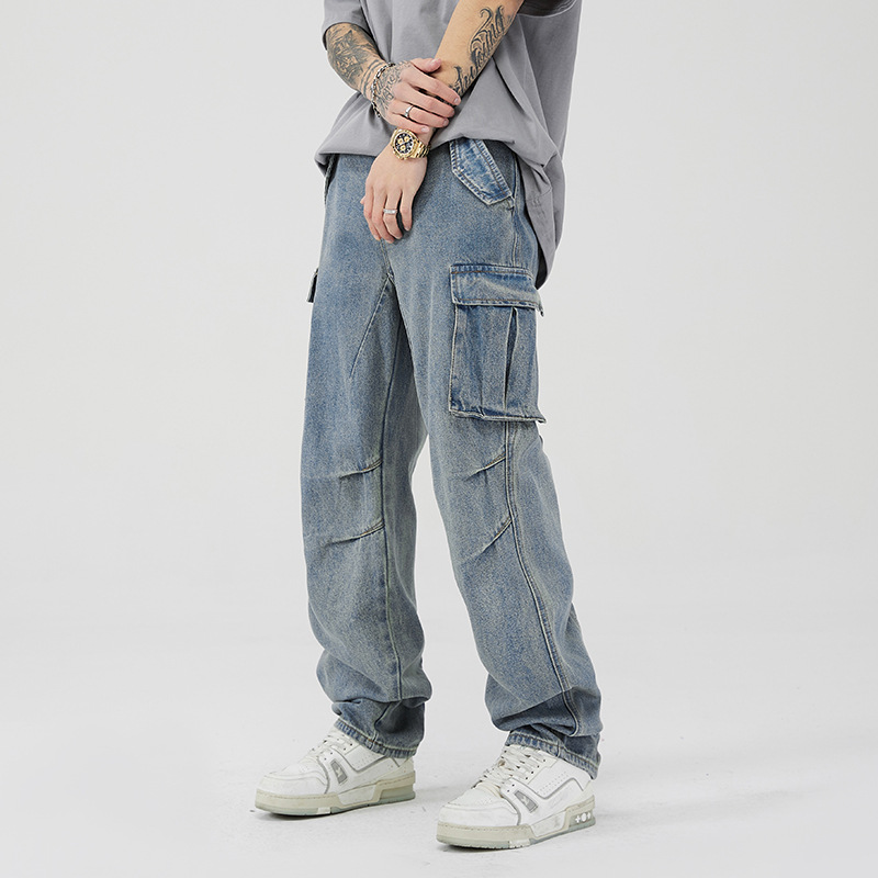 Locketomy синие 100% хлопковые джинсы с нашитыми карманами